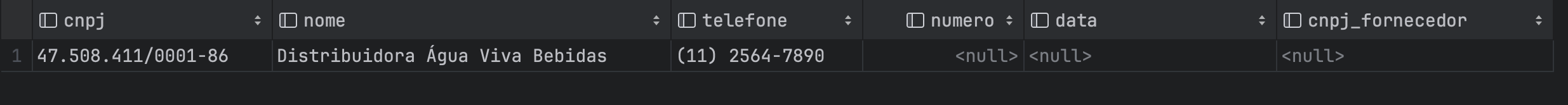 | CNPJ (PK) | Nome | Telefone |
