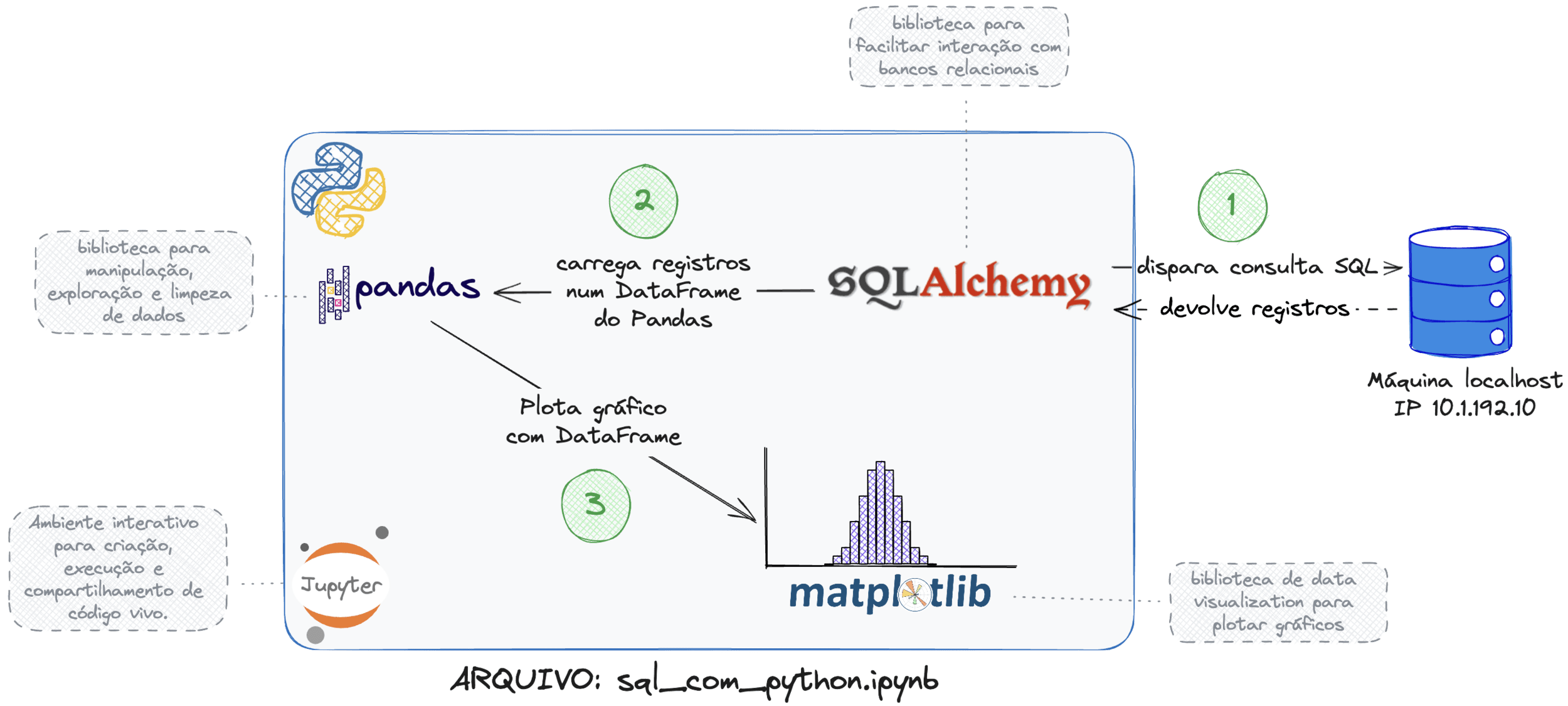 # ... continuando: carrega dados do banco num DataFrame do Pandas