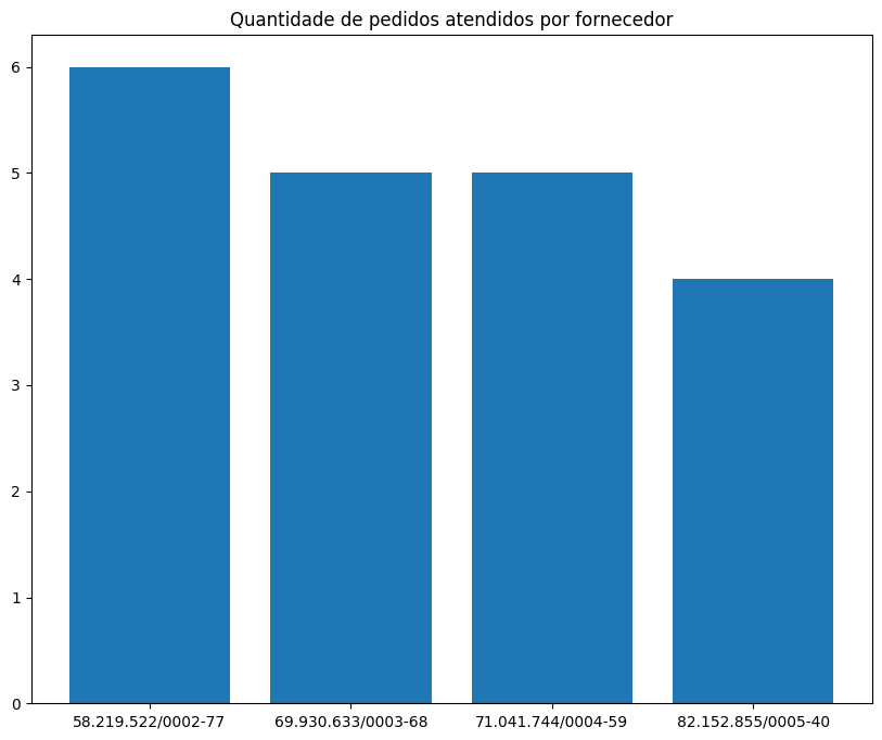 plt.title('Quantidade de pedidos atendidos por fornecedor')