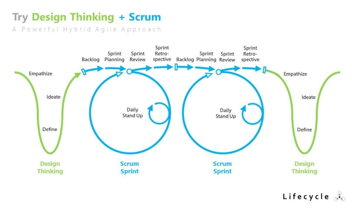 Realizaremos una representación del Dual-Track emulando dos ciclos de un equipo de diseño.