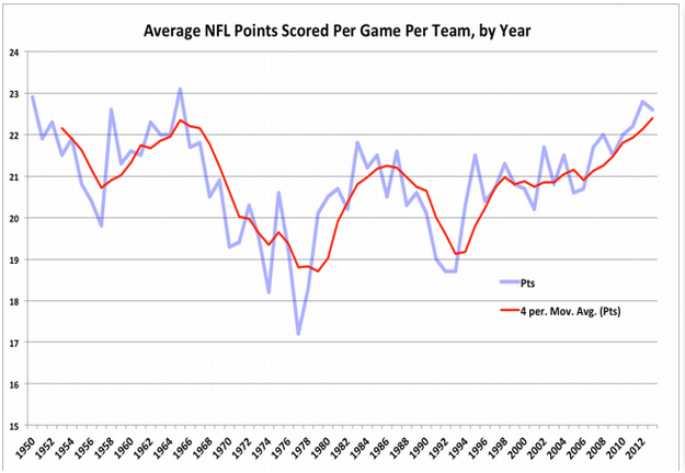 Slides 8, 10, 11. bleacherreport.com/articles/1786937-is-this-the-most-explosive-era-of-offense-in-nfl-history