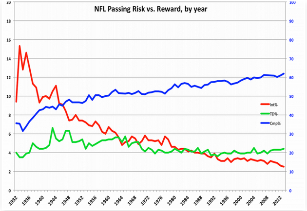 Combined with the fact that the NFL and its audience has determined that this pass play is more entertaining