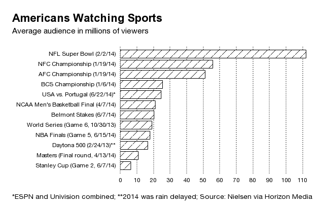 Draws the highest sports television ratings, with the top three rated events in 2014