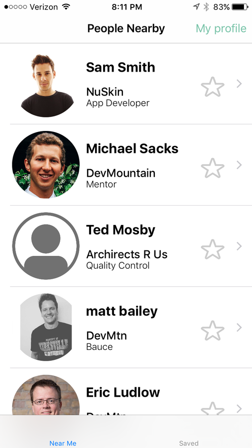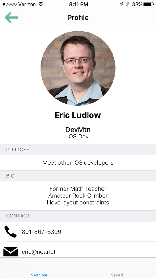 Professional networking app that gives users access to basic professional details about the people near them at a networking event, professional group, or other locations. The app uses Core Location and GeoFire to update a user's location and query users nearby in real time.