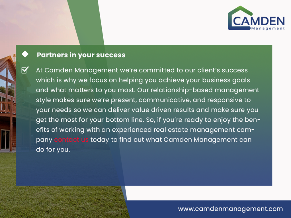 At Camden Management we are committed to the future success of our residents, commercial tenants, and owners. We deliver value by focusing on what matters to you the most.