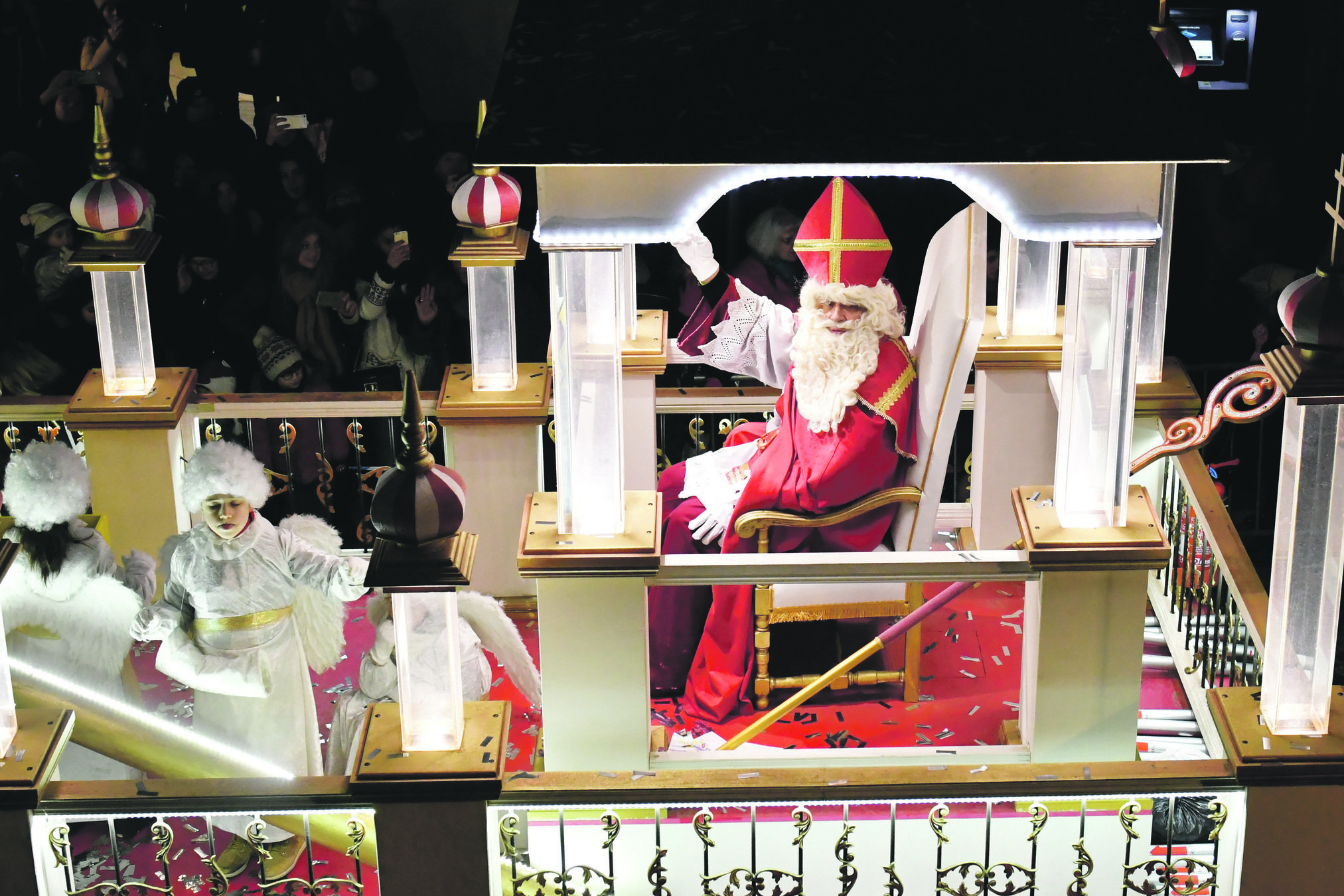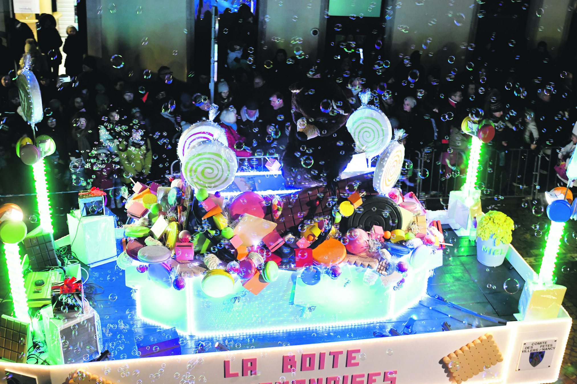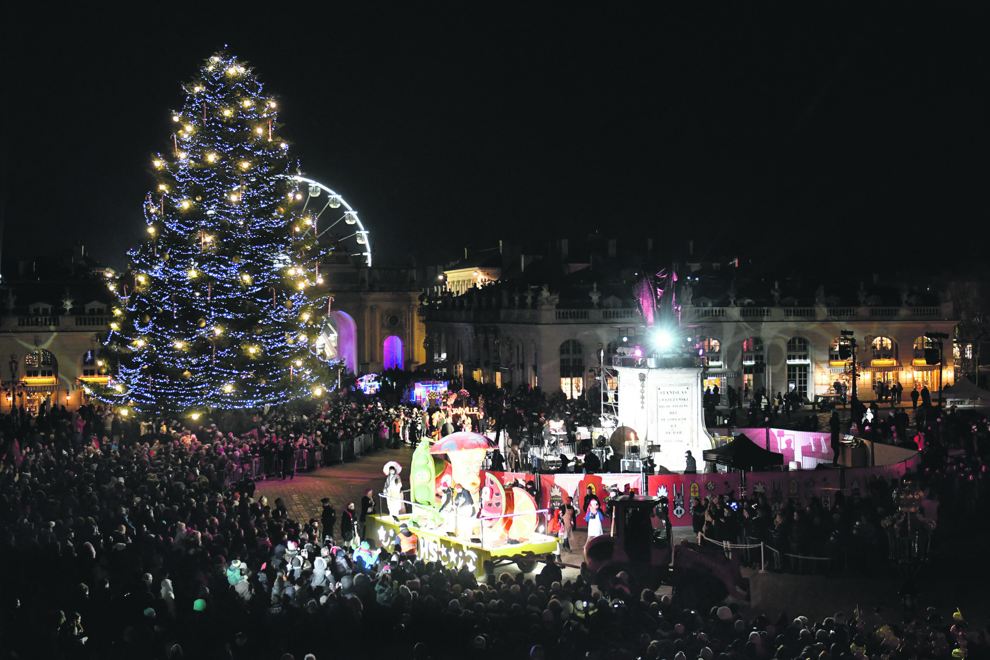 Le décor est à la hauteur. La Place Stanislas et son grand sapin étaient rebaptisés samedi soir Place Saint-Nicolas pour l’arrivée en fanfare et en lumière des chars dont celui du Saint-Patron.