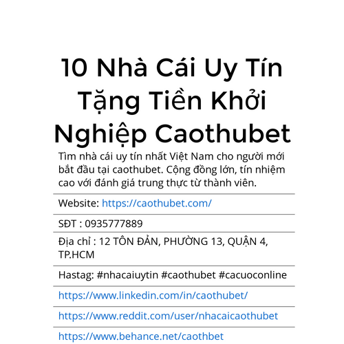 Tìm nhà cái uy tín nhất Việt Nam cho người mới bắt đầu tại caothubet. Cộng đồng lớn, tín nhiệm cao với đánh giá trung thực từ thành viên. SĐT : 0935777889 Địa chỉ : 12 TÔN ĐẢN, PHƯỜNG 13, QUẬN 4, TP.HCM Hastag: #nhacaiuytin #caothubet #cacuoconline