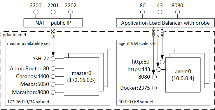 set MASTER=%RESOURCE_GROUP%mgmt.westeurope.cloudapp.azure.com set AGENTS=%RESOURCE_GROUP%agents.westeurope.cloudapp.azure.com ssh -L 80:localhost:80 -N ciberado@%MASTER% -p 2200