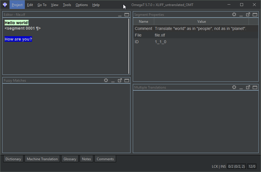 </xliff>This is what the file looks like in OmegaT before translating it