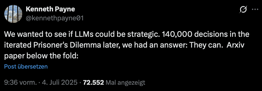 “LLMs fail miserably at the Ultimatum Game once you strip away textbook phrasing…