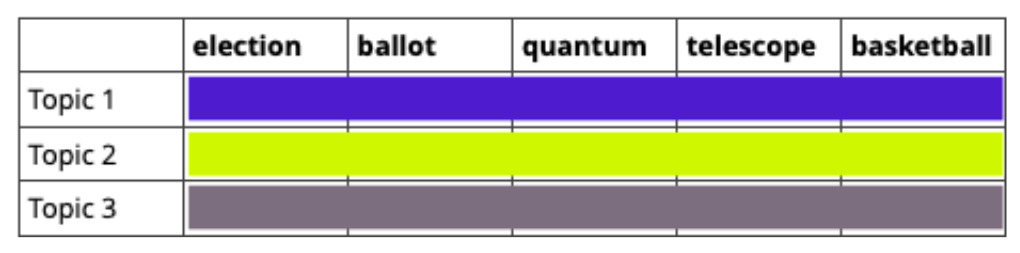 # Each topic's word distribution is sampled from a Dirichlet with parameter beta.