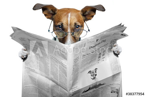 O cão gosta de ler o jornal todos os dias.