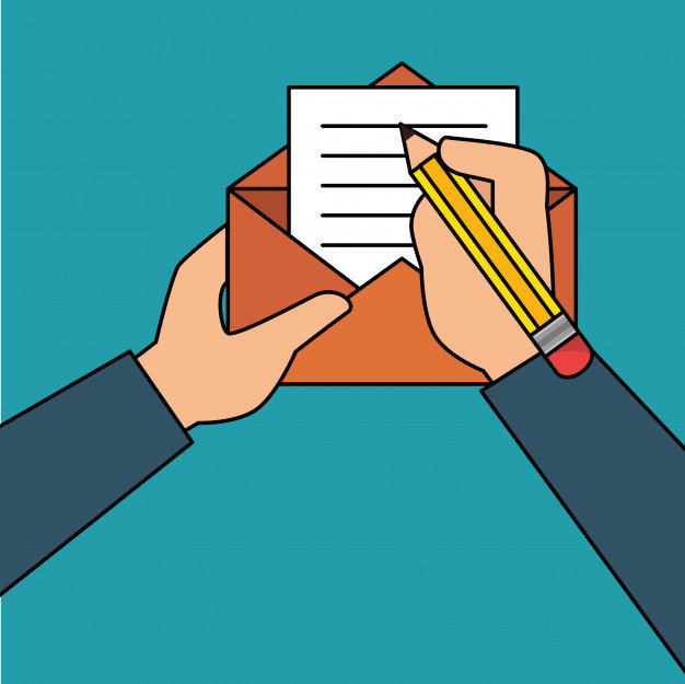 Ele está a escrever uma carta para a