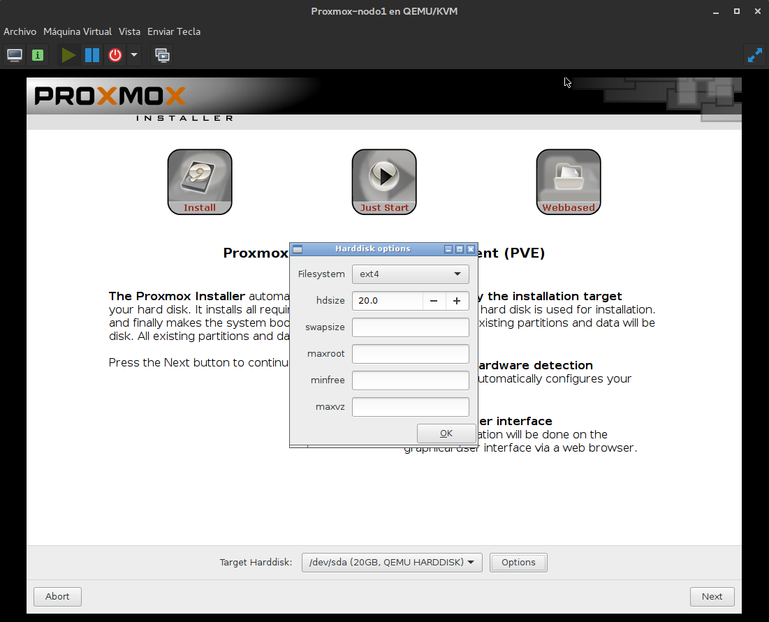 - Instalación de las máquinas para Proxmox VE