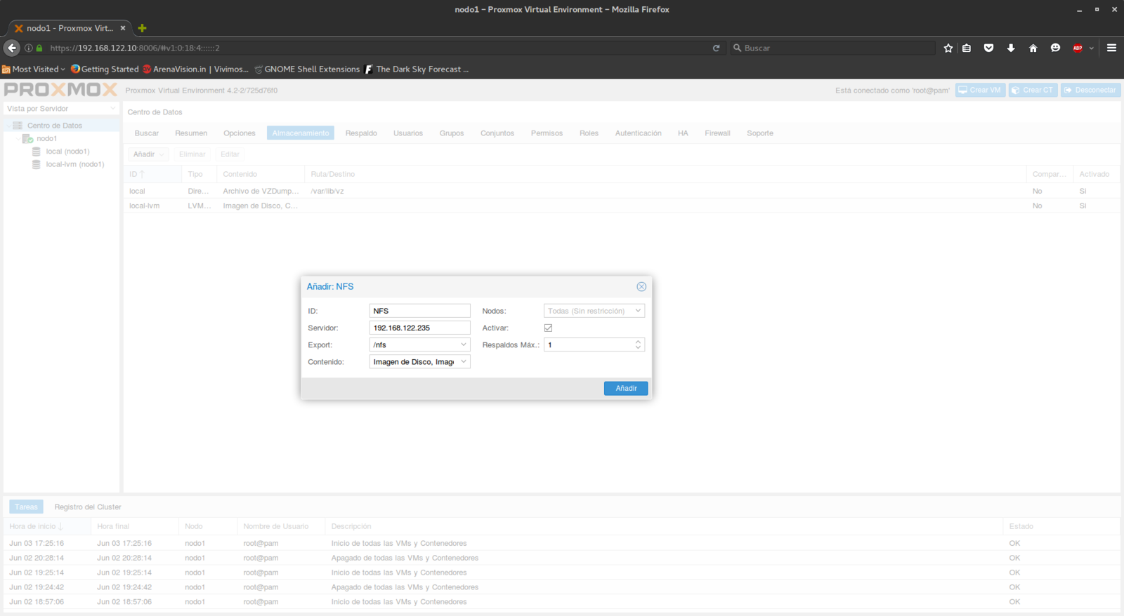 Conexión NFS en Proxmox VE