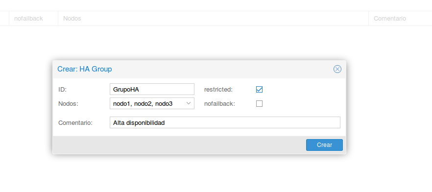 Creación de un nuevo grupo de HA