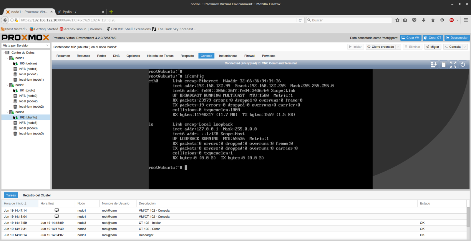 Clúster de Alta Disponibilidad en Proxmox VE 4.2 con balanceador de carga e instalación de Pydio sobre LXC