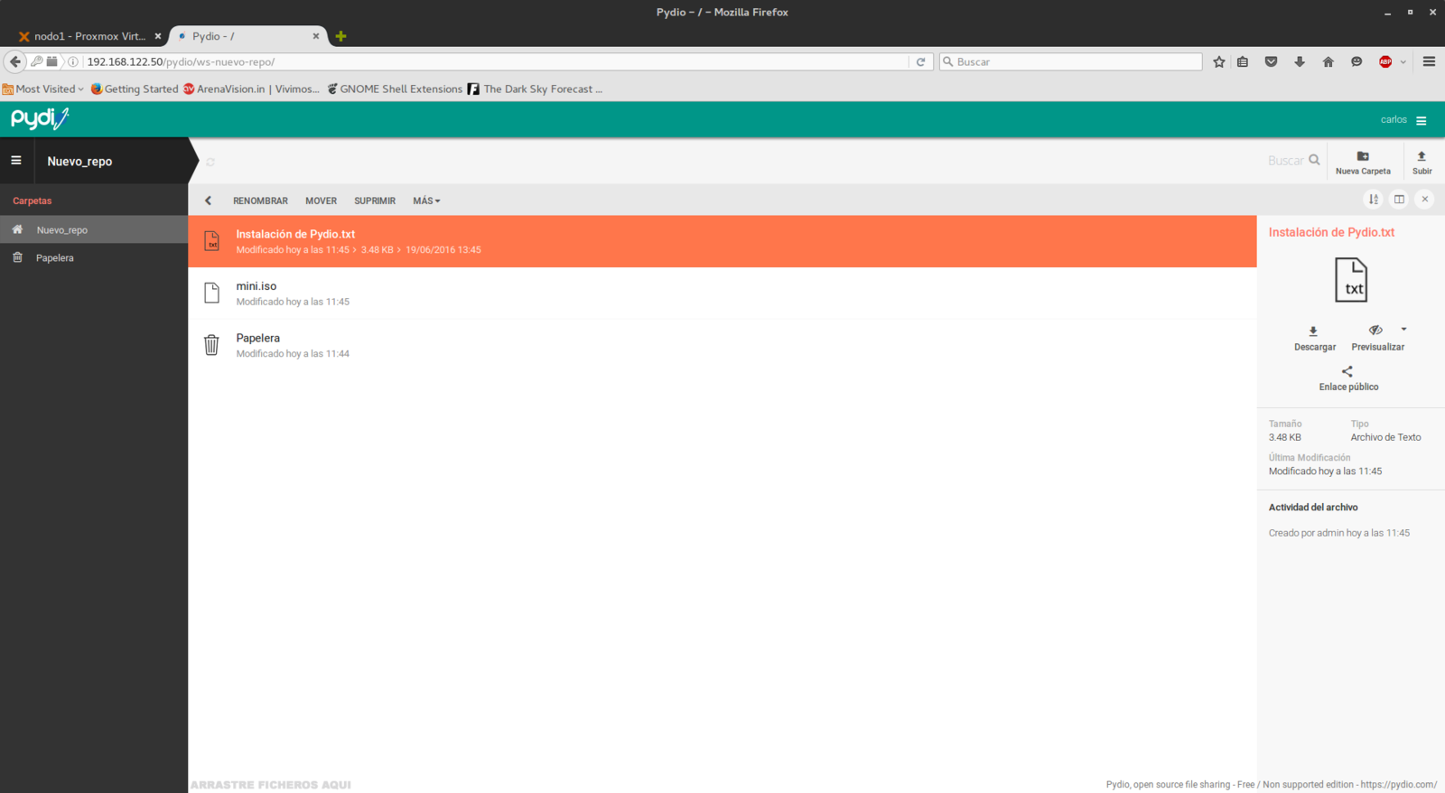 -Instancia LXC con Pydio: