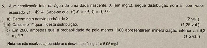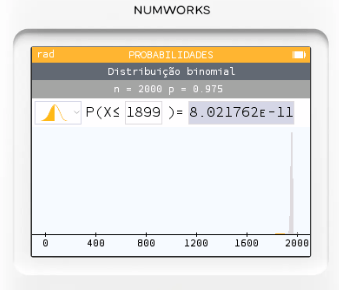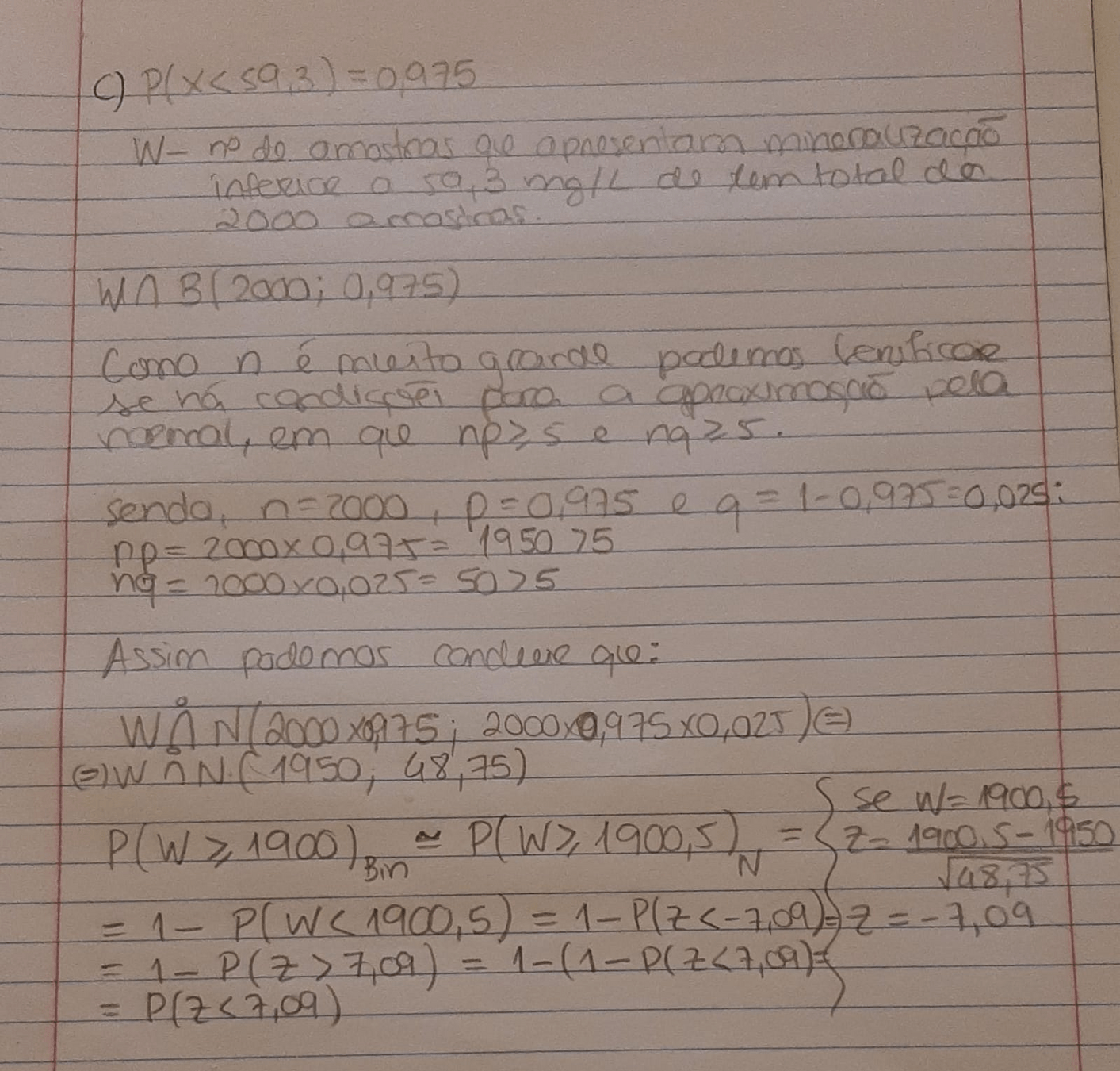 Como a probabilidade de sucesso é tão alta (e o \(\sigma_w\) é pequeno), é de esperar um resultado próximo de 1. Estando restrita à utilização da tabela da normal padrão, é o que tem aí. De qualquer modo, em qualquer calculadora vai encontrar forma de calcular \(P(w\leq 1899)\) usando a distribuição binomial...