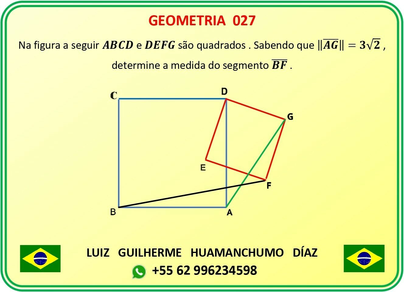 Assim, \(\overline{BF}=\sqrt{2}\cdot\overline{AG}=6\).