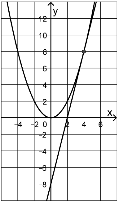 A figura ao lado mostra o gráfico de \(f_{\frac{1}{2}}\) e a reta \(t\), tangente ao gráfico de \(f_{\frac{1}{2}}\) no ponto de coordenadas \(\left(4,f_{\frac{1}{2}}(4)\right).\)