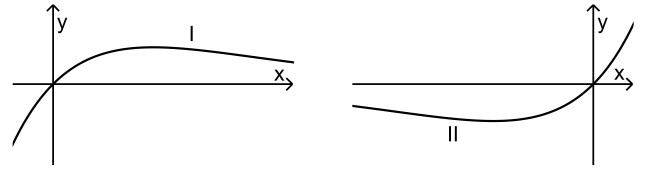 b) Os gráficos I e II abaixo representados são gráficos desta família de funções. Um dos dois corresponde a um valor positivo de \(a\). Diga qual é o gráfico e justifique a sua decisão.