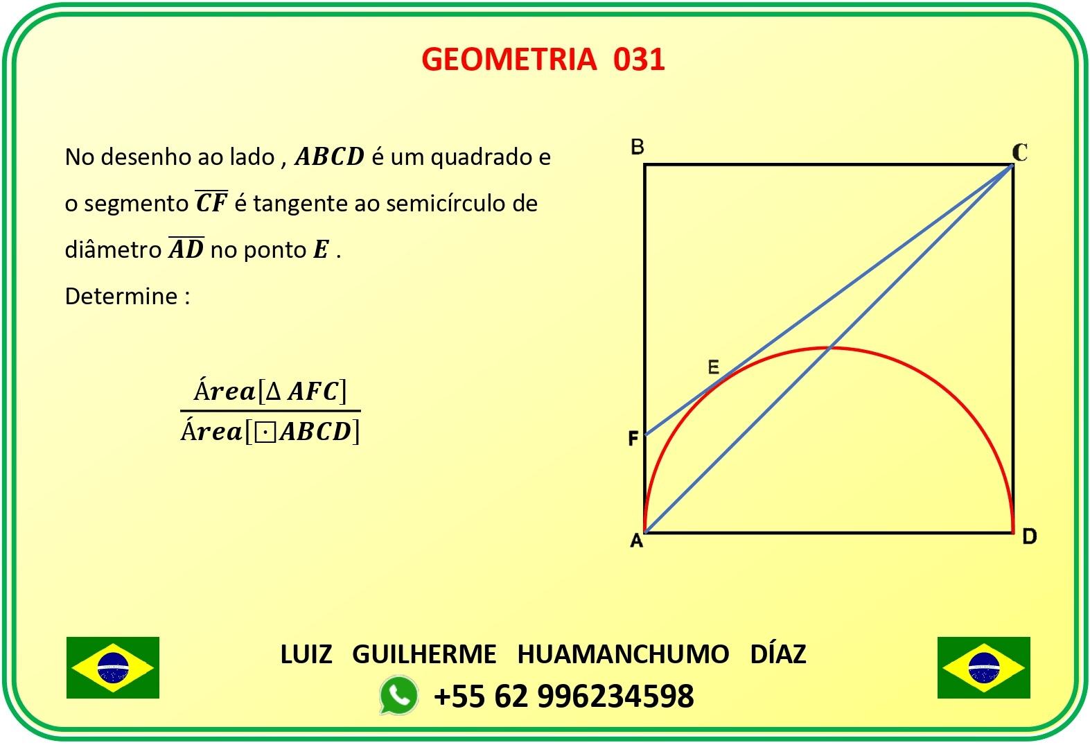 Sem perda de generalidade, suponhamos que o lado do quadrado \([ABCD]\) é 1.