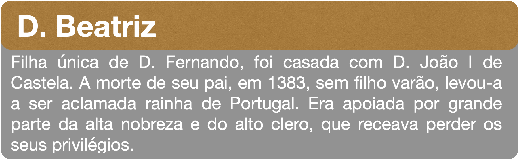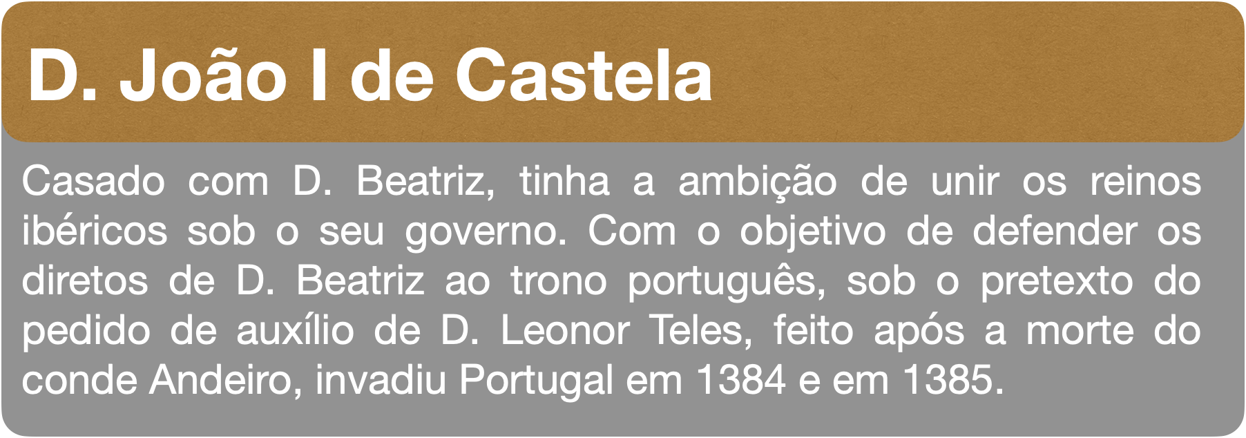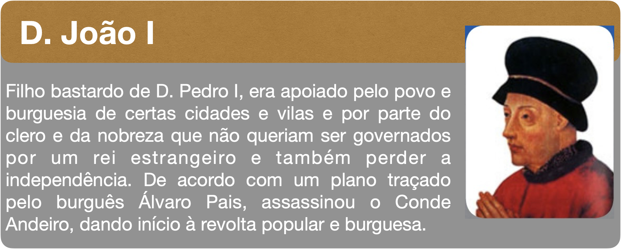 D. Fernando envolveu-se em guerras com D. João I de Castela, achava-se com o direito de reclamar para si o trono Castelhano. Mas saiu derrotado. Para selar a paz entre ambas nações assinou o tratado de Salvaterra de Magos, dando sua única filha, D. Beatriz, em casamento com o rei Castelhano. D. Fernando morre sem herdeiro varão... o que sucede?
