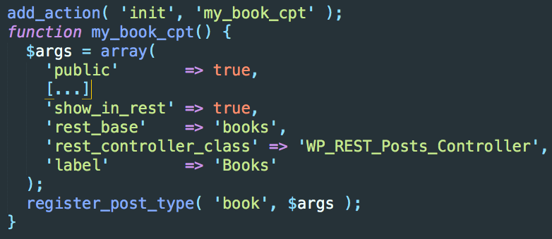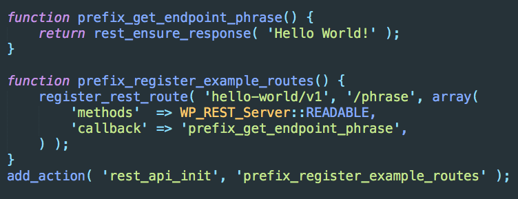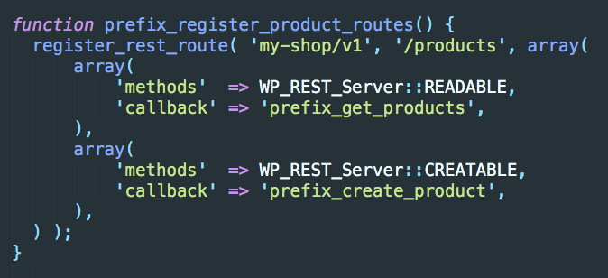 - DELETE -> /wp-api/wp/posts/1 --> wp_delete_post()