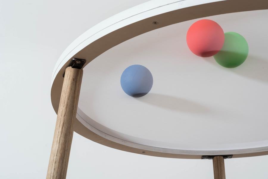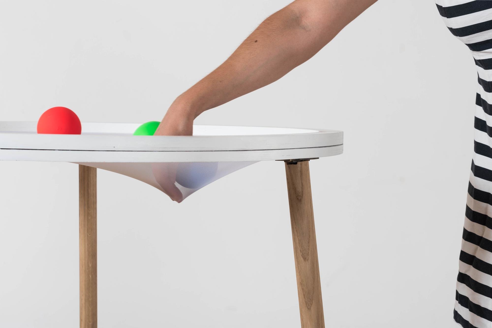 L'utilisateur dépose des balles de couleurs sur une surface textile souple translucide. Il les met en mouvement en pressant la toile par endroits. Les mouvements, captés par une caméra placée sous la structure, permettent de moduler des pistes sonores.