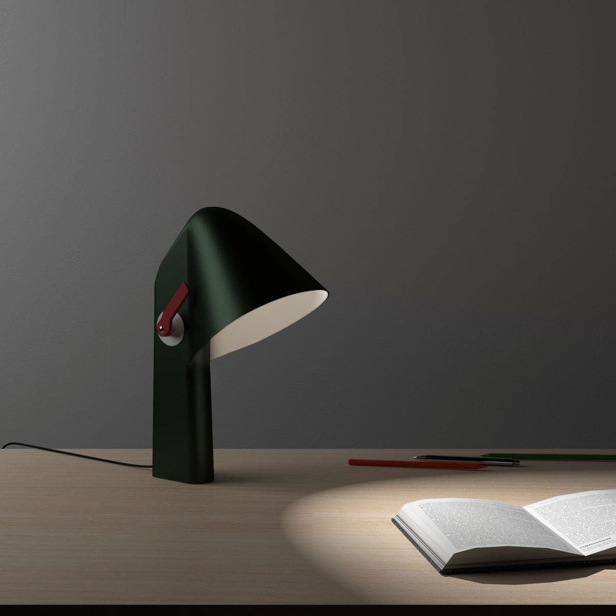 Cinna propose de dessiner un luminaire sur la thématique de la mobilité. Je pense alors à la mobilité professionnelle et fais le constat que de plus en plus de personnes travaillent depuis chez elles. Dans ce contexte, je réfléchis à la place du bureau lorsque la journée de travail est terminée. Je me demande comment faire évoluer cet espace au cours de la journée pour qu'il soit adapté aux moments de travail comme aux moments de détente.