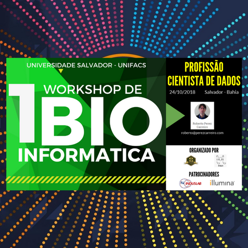 I Workshop de Bioinformática, é um evento apoiado pelo Diretório Acadêmico de Biomedicina (DABIOMED) que ocorrerá no dia 24 de Outubro de 2018 às 13hrs, na Universidade Salvador (UNIFACS), no campus Professor Barros, Auditório do 7º Andar. Este evento é destinado a toda população estudantil (da instituição e público externo), assim como, os demais profissionais.