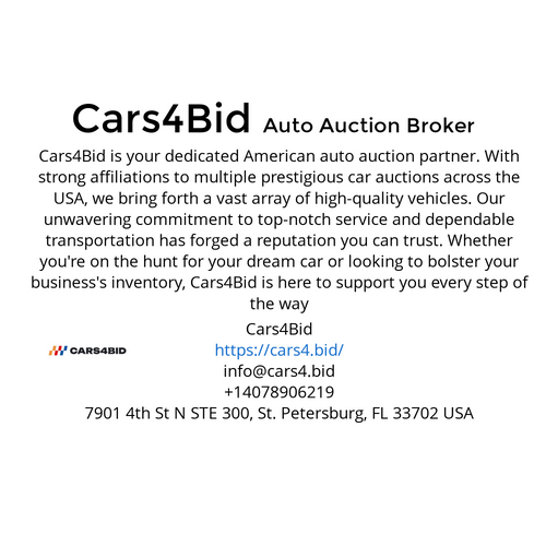 Cars4Bid - your gateway to extraordinary auto auction experiences! Cars4Bid https://cars4.bid/ info@cars4.bid +14078906219 7901 4th St N STE 300, St. Petersburg, FL 33702 USA