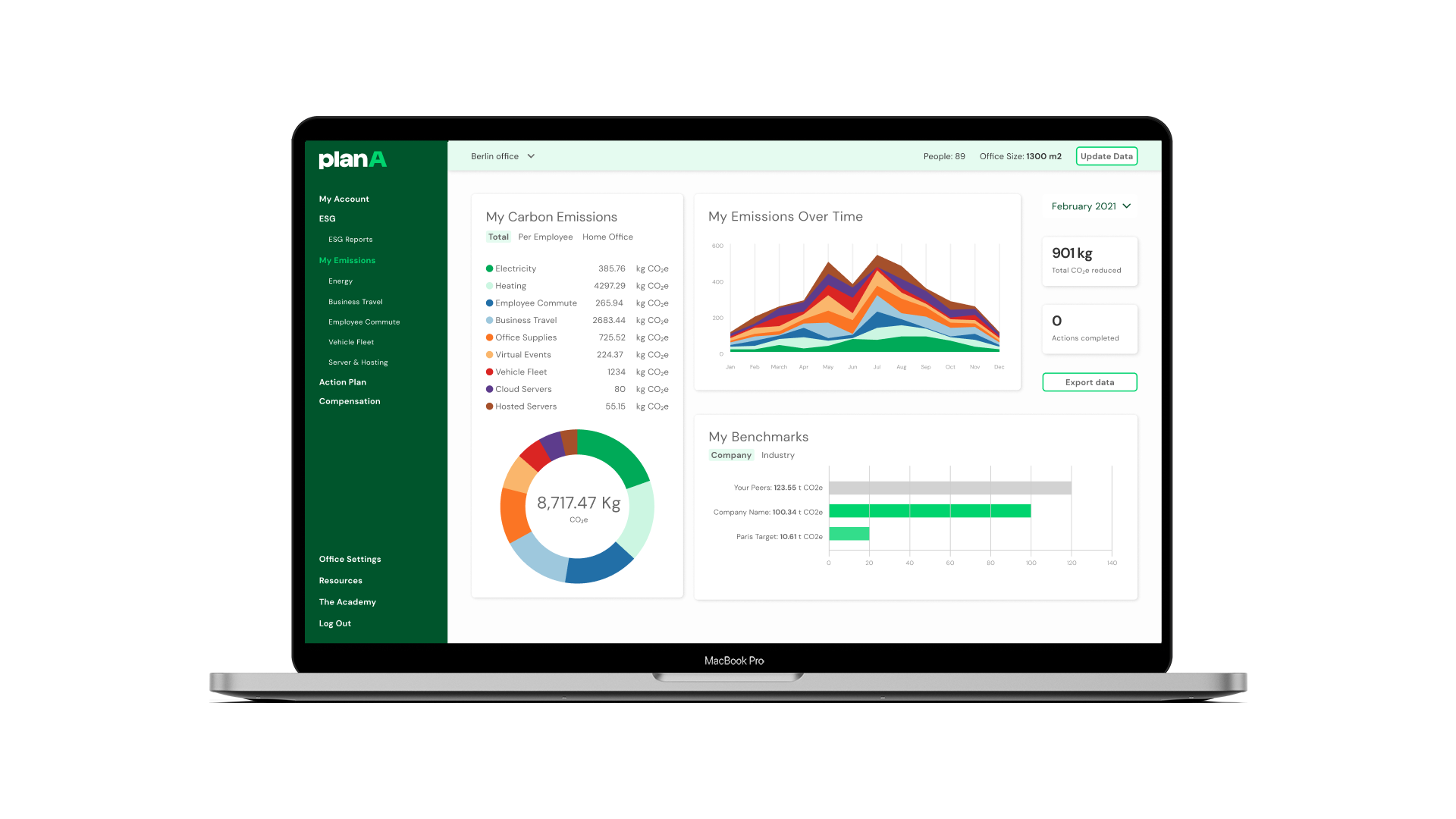 - 173,086 kWh × 442 gCO2e/kWh = 76,504,219 gCO2e