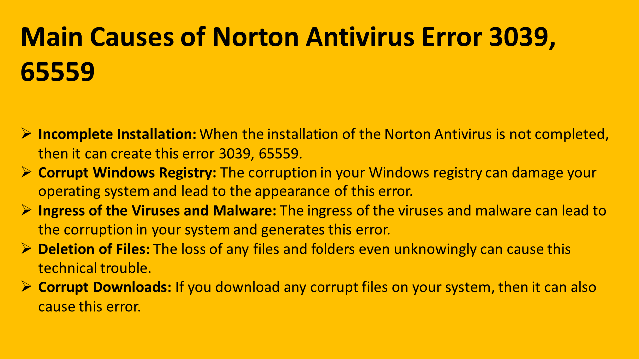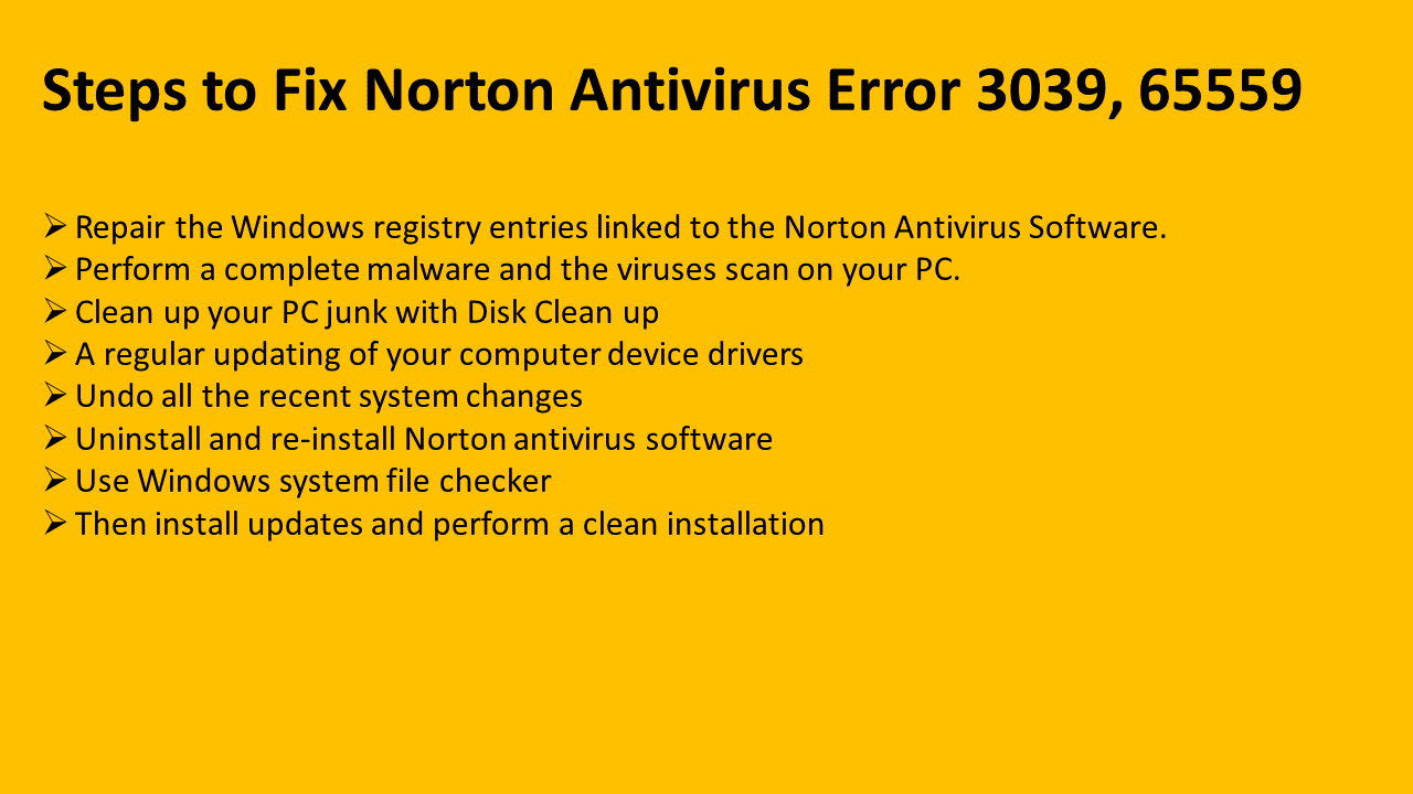 Get the support to fix Norton Error 3039, 65559 Call 1-888-909-0535 Norton Technical Support Phone Number or follow the steps to Fix Norton Antivirus Error 3039, 65559. http://www.antivirussupportnumberusa.com/blog/fix-norton-antivirus-error-3039-65559/