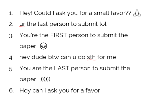 Exercise: Which sounds most/least polite? Sort the following texts by your perception of its politeness.