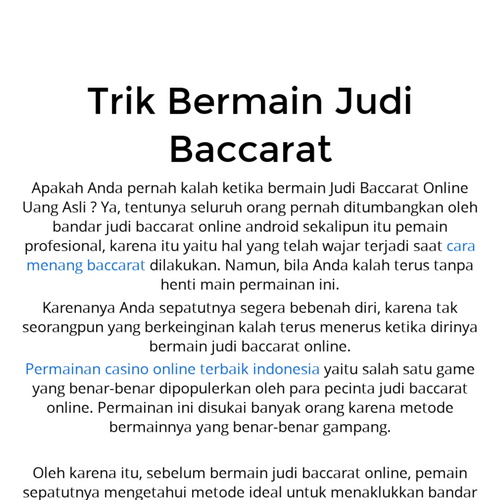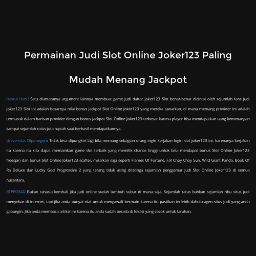 Sekarang ini banyak terdapat permainan-permainan online yang amat menempel oleh masyarakat Indonesia yakni permainan judi slot online duwit asli. Permainan ini seperti permainan keberuntungan yang hadir di tengah-tengah masyarakat yang amat memerlukan langkah lain untuk bersenang-senang sekaligus sanggup membuahkan dana di Daftar Situs Judi Slot Online Terpercaya.