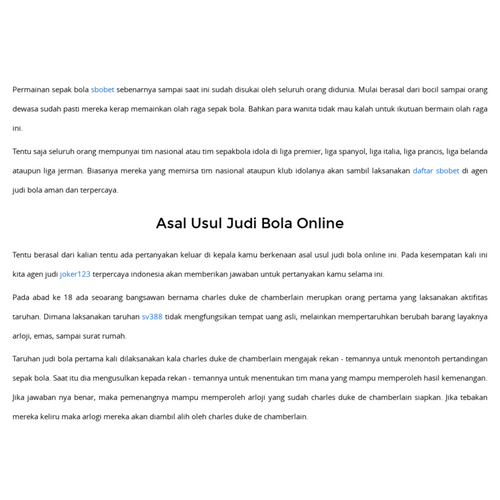 Asal Usul Judi Bola Online sebenarnya sampai saat ini sudah disukai oleh seluruh orang didunia. Mulai berasal dari bocil sampai orang dewasa sudah pasti mereka kerap memainkan olah raga sepak bola. Bahkan para wanita tidak mau kalah untuk ikutuan bermain olah raga ini.