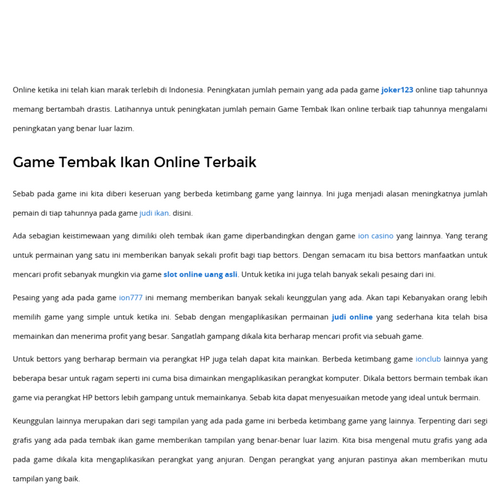 Online ketika ini telah kian marak terlebih di Indonesia. Peningkatan jumlah pemain yang ada pada game joker123 online tiap tahunnya memang bertambah drastis. Latihannya untuk peningkatan jumlah pemain Game Tembak Ikan online terbaik tiap tahunnya mengalami peningkatan yang benar luar lazim.