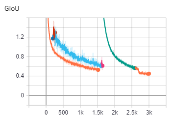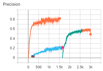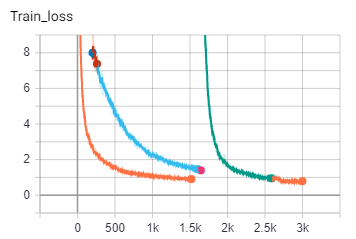 (最後採用的是橘色的線,藍色的線是用比較小的model實驗的結果)
