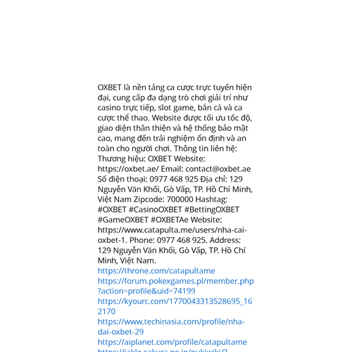 Website: https://www.catapulta.me/users/nha-cai-oxbet-1. OXBET là nền tảng ca cược trực tuyến hiện đại, cung cấp đa dạng trò chơi giải trí như casino trực tiếp, slot game, bắn cá và ca cược thể thao. Website được tối ưu tốc độ, giao diện thân thiện v