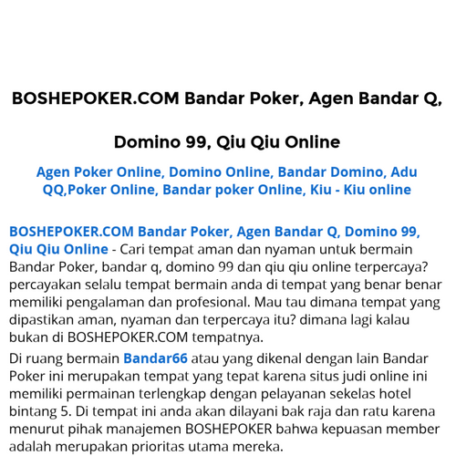 BOSHEPOKER.COM Bandar Poker, Agen Bandar Q, Domino 99, Qiu Qiu Online www.boshepoker.com