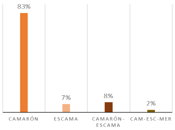 - 54% (35, 687) se dedica a la pesca de camarón en esteros, costas y altamar, tanto de origen industrial como artesanal,