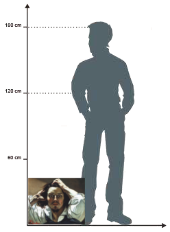 L'échelle 1:1 est presque respectée, comme pour renforcer l'effet "miroir" (l’œuvre serait comme le reflet du spectateur se trouvant face à lui).