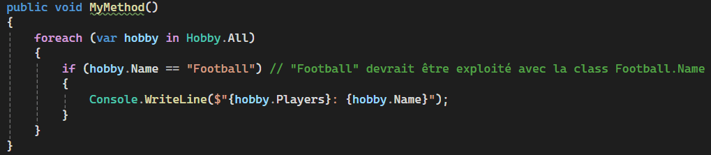 Les commentaires sur des conditions : Ici on ne commente pas, on créer une méthode dont le nom explique la condition.