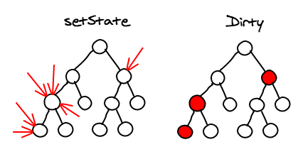 - Calculates the smallest set of changes to make to go from the current UI to the next one.