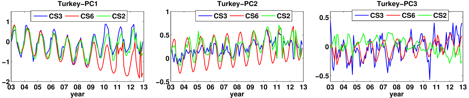 Farklı GRACE verilerin PCA sonuçlarının uyumunun ilgili bölgeye bağlı olduğu görülmüştür.