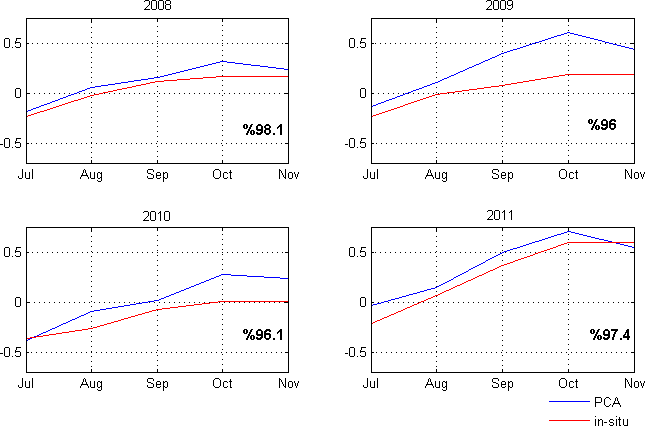 CS3 verisinin PCA ilk mode sonuclarının in-sıtu verisi ile karşılaştırılması