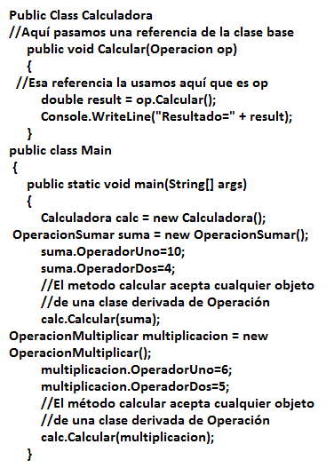 - Cada clase que hereda de otra puede usarse como su padre sin necesidad de conocer las diferencias entre ellas