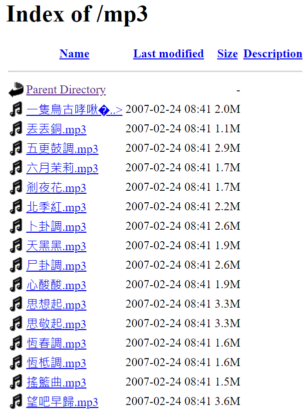 intext:"Index of /mp3"